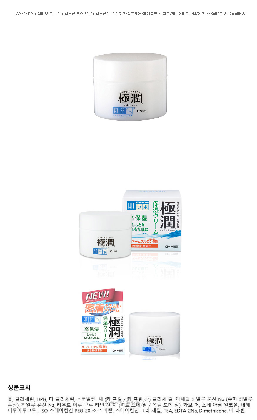 HADARABO 하다라보 고쿠쥰 히알루론 크림 50g/히알루론산/스킨로션/피부케어/페이셜크림/피부관리/데미지관리/에센스/極潤/고쿠쥰(특급배송)